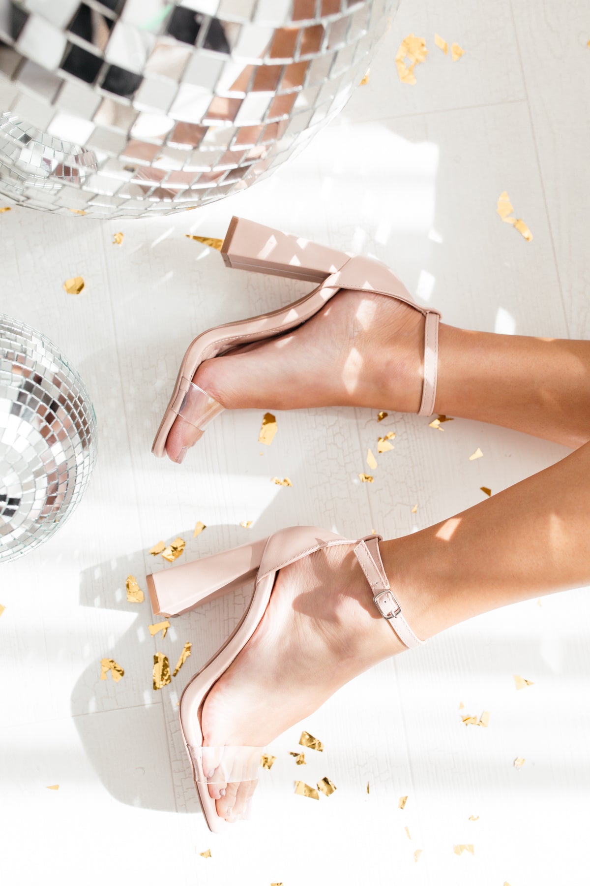 Our Clear Strap Heel is the perfect shoe for any special occasion. Featuring a nude base, a clear front strap, and nude ankle strap.