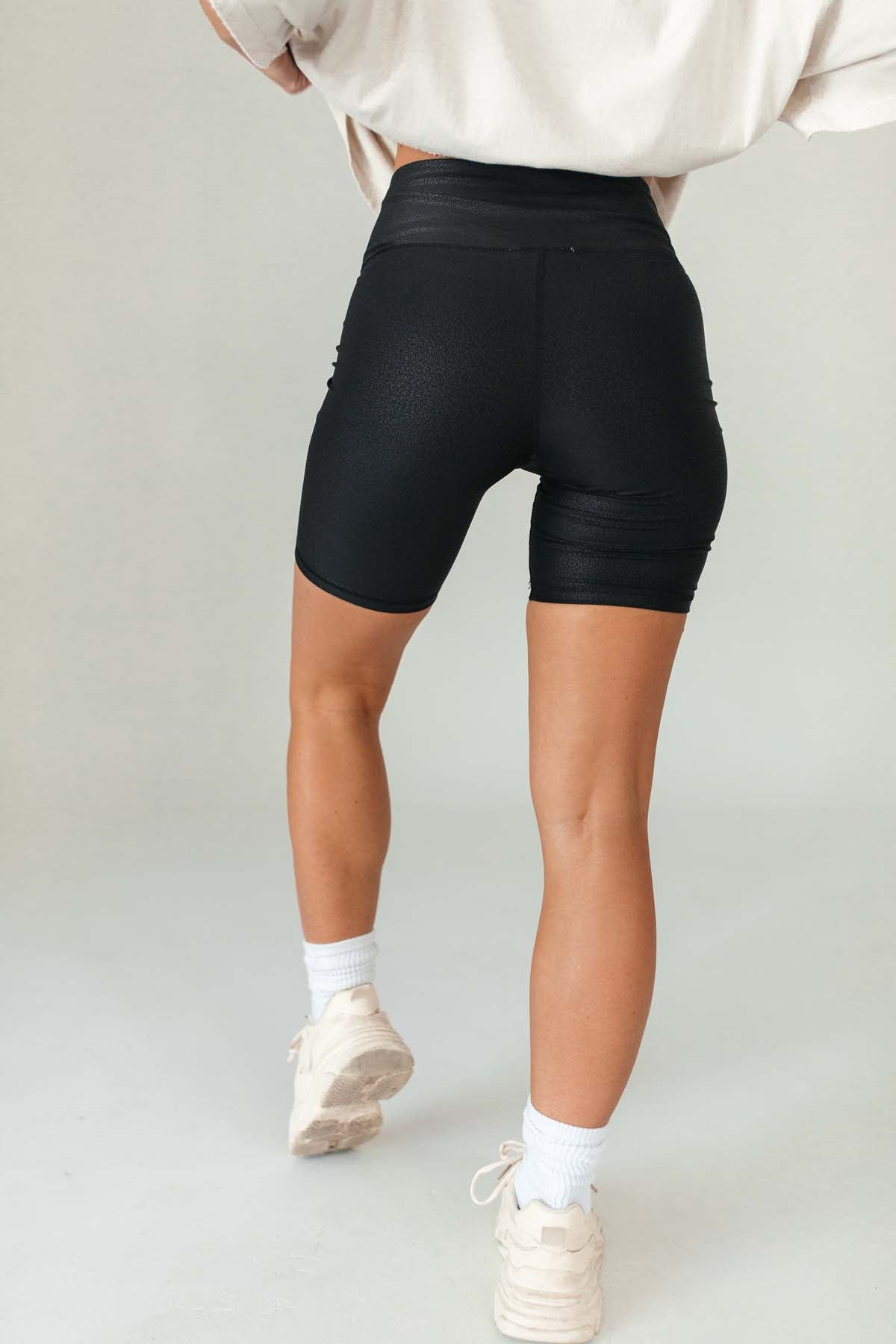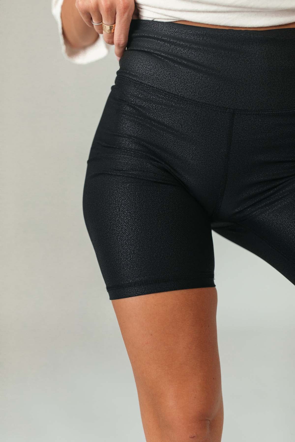 Our Delaney Faux Leather Biker Shorts arehigh-waisted biker shorts with a stretchy, comfortable fit with a faux leather finish.