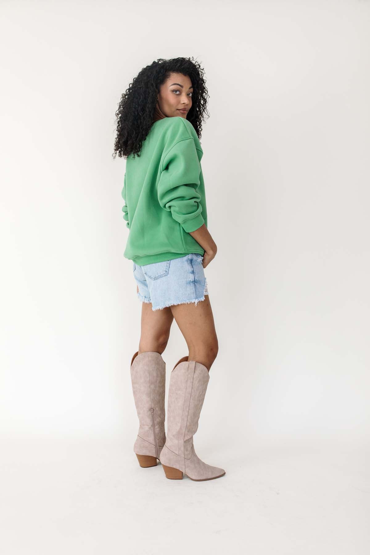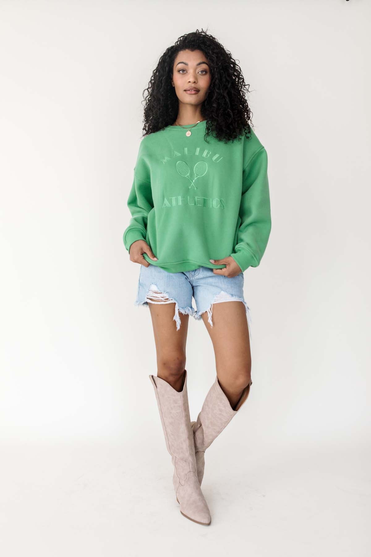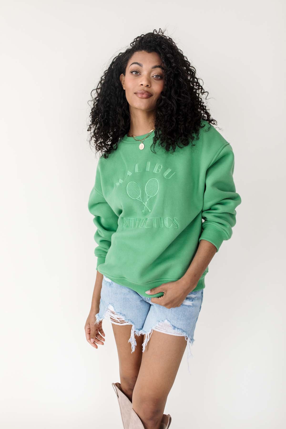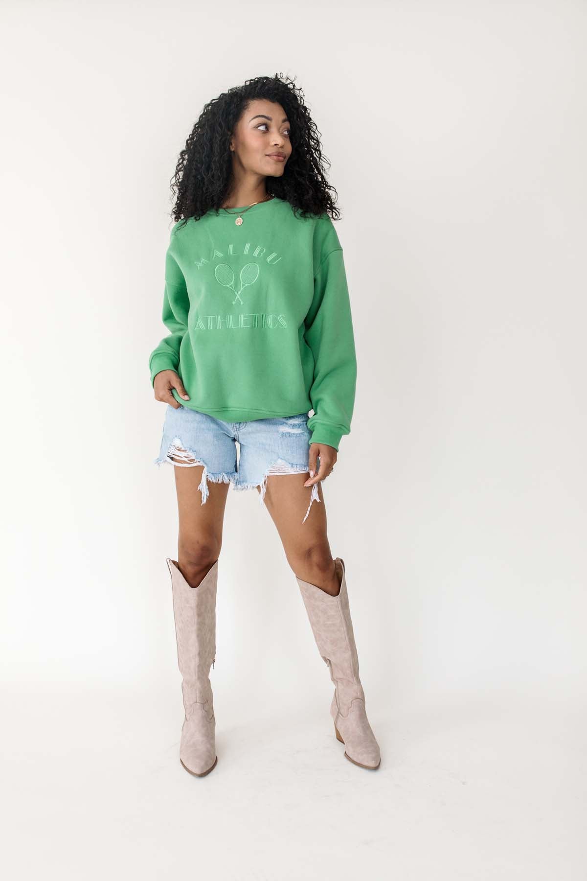 Our MalibuKelly Green Tennis Sweatshirt has a classic crew neckline and subtle ribbed trims.