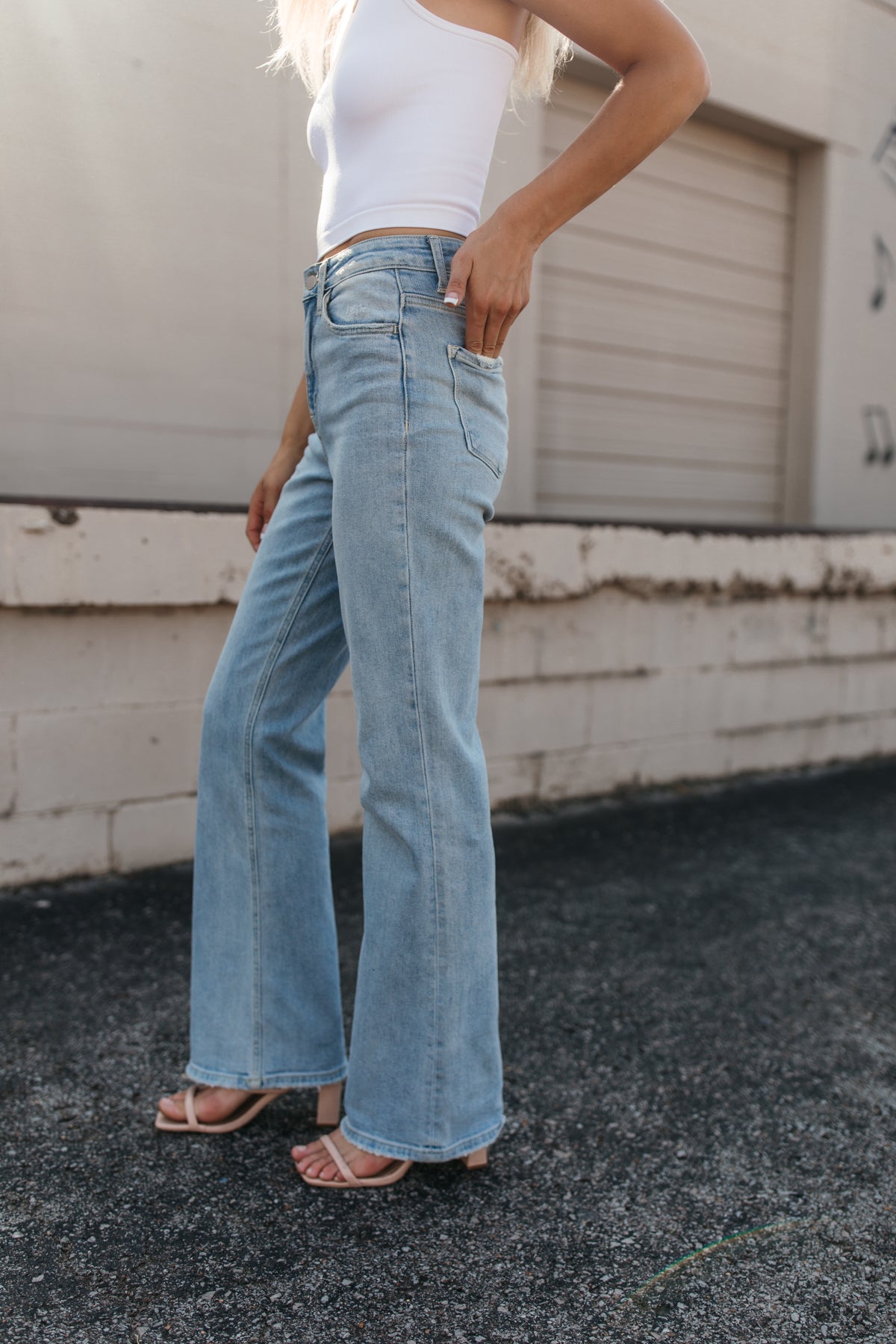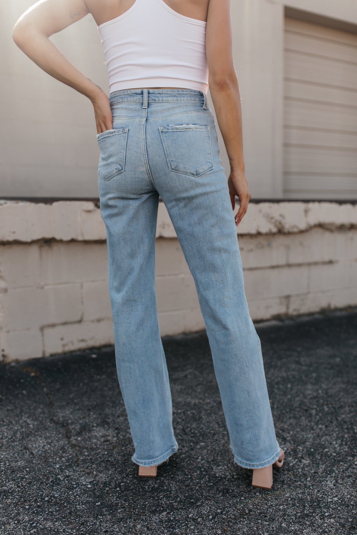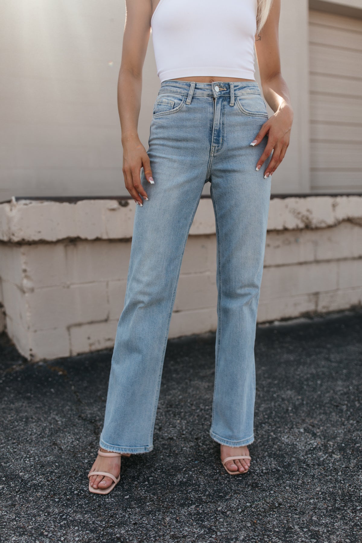 Our Rylee Wide Leg Light Wash Jeans feature a classic high waisted fit, pockets & wide legs.