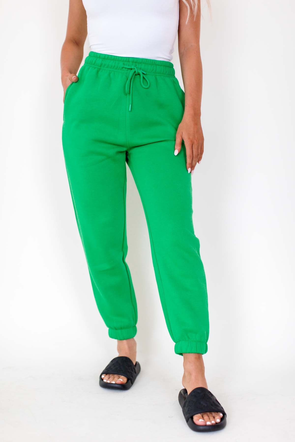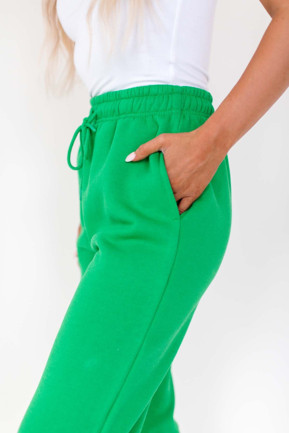 Our Georgia Kelly Green Sweatpants are super soft and feature a drawstring tie.